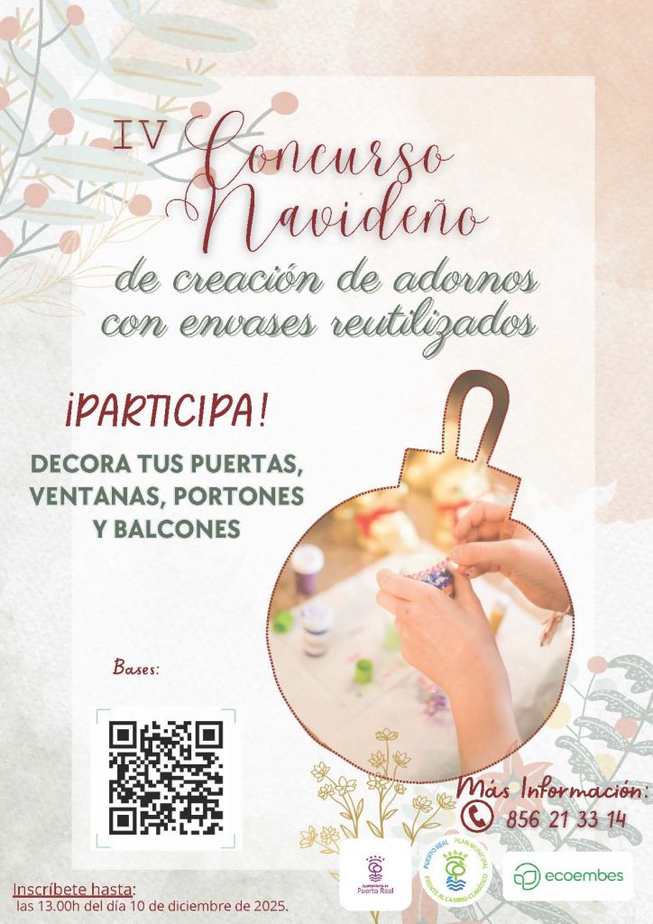 El Ayuntamiento de Puerto Real ha abierto una nueva convocatoria para el Concurso de fabricación de adornos navideños elaborados con envases ligeros, cartón y papel usados, que se colocarán en puertas, ventanas, portones y balcones del municipio.