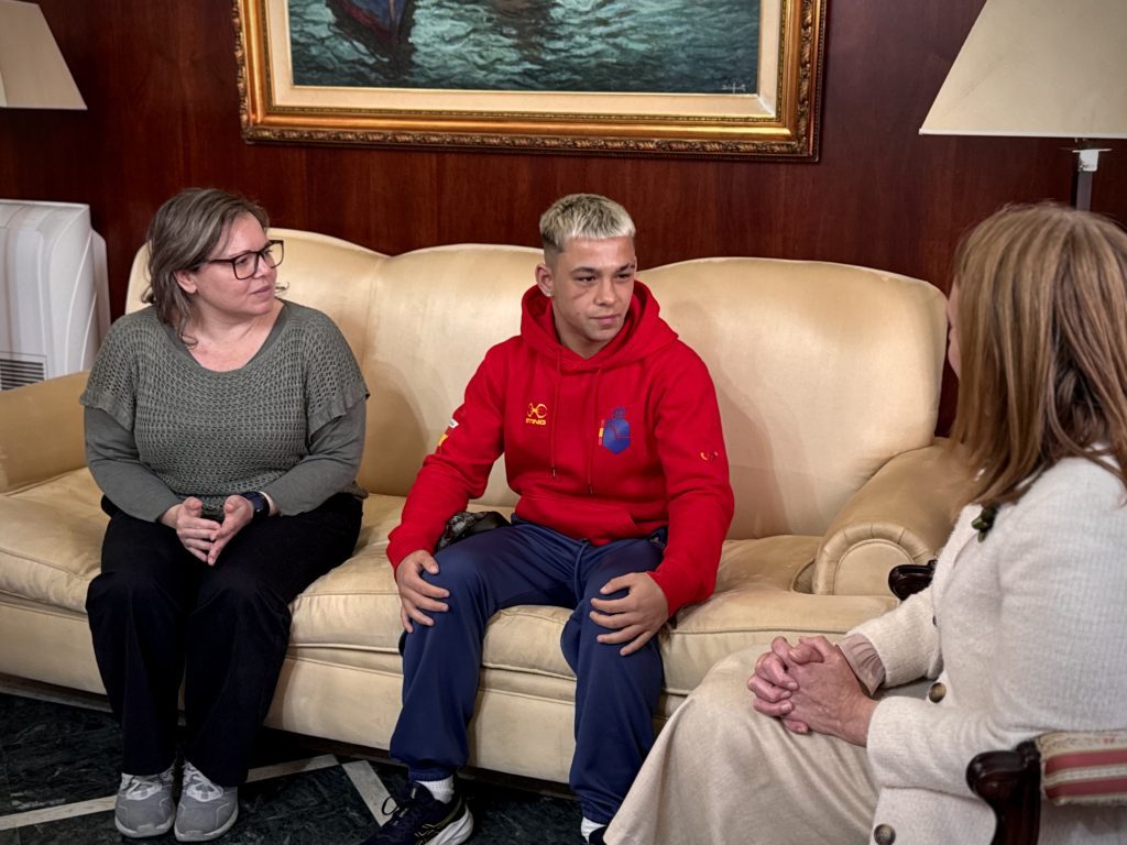 Aurora Salvador recibe al joven boxeador puertorrealeño Pablo Souto por sus recientes éxitos deportivos