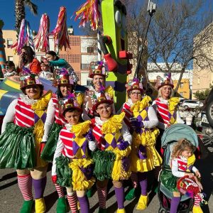 En el año 2023, se elaboró un disfraz de loro, y las manos de Yoli se encargaron de dar color y forma a un tipo que les permite obtener el tercer premio en la cabalgata. Sus 98 componentes generan gran expectación, y colorean nuestras calles durante todo el recorrido de la cabalgata.