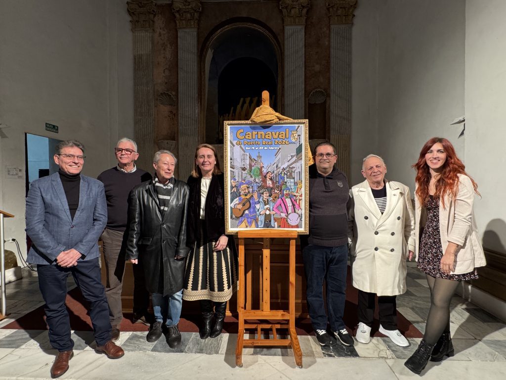 El Ayuntamiento de Puerto Real ha presentado esta tarde en el Centro Cultural San José el cartel oficial del Carnaval 2026, obra titulada “Sinergia” del artista local Juan Luis Rincón Chamorro. La imagen ha sido elegida como ganadora del concurso convocado por el Consistorio para seleccionar la pieza que representará las próximas fiestas.