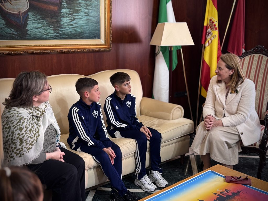 La alcaldesa de Puerto Real, Aurora Salvador, y la concejala de Deportes, Virginia Mena, recibieron en el Consistorio a los jóvenes jugadores del Club Deportivo La Salle, Daniel Martínez Prieto y Thiago Rodríguez Benítez, que se proclamaron subcampeones de Andalucía con la selección gaditana infantil de fútbol sala en la fase final celebrada en Jerez y El Puerto de Santa María entre los días 14 y 16 de febrero.