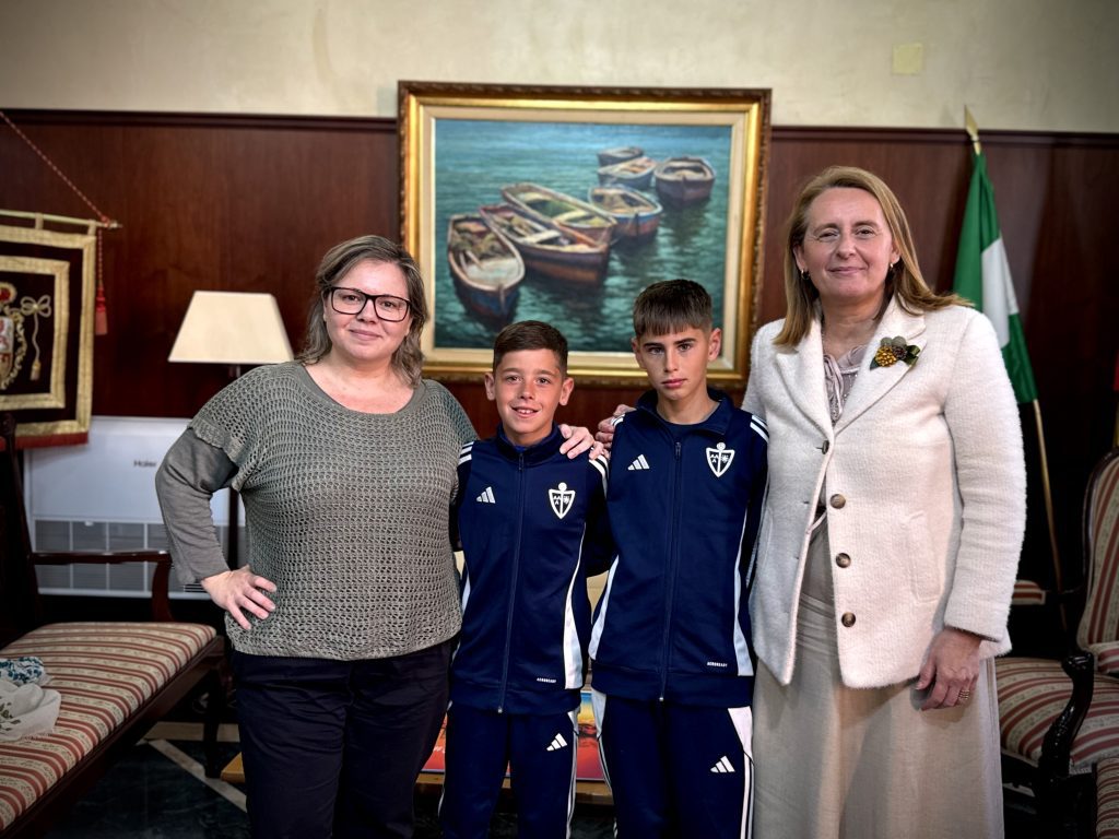 Durante la recepción, los dos deportistas, de 11 años, compartieron su experiencia en la competición y su afición por el deporte. Daniel, delantero con cinco años de práctica, y Thiago, portero con siete años de experiencia, explicaron cómo viven la diferencia entre el fútbol y el fútbol sala y qué les motiva a seguir entrenando cada semana. También hablaron de sus equipos y jugadores favoritos, mostrando la ilusión con la que afrontan su etapa formativa.