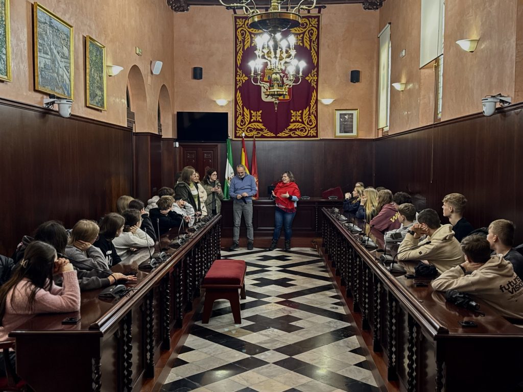 El pasado lunes, la Casa Consistorial acogió la visita de un grupo de alumnos y alumnas que participan estos días en un programa de intercambio junto al IES Profesor Antonio Muro. La alcaldesa, Aurora Salvador, y la concejala de Turismo, Virginia Mena, fueron las encargadas de recibir al alumnado y darles la bienvenida a Puerto Real.