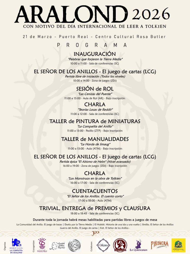 Nazaret Ramírez, ha agradecido públicamente la implicación de todas las entidades que hacen posible el evento y ha finalizado invitando a la ciudadanía a disfrutar de este día repleto de actividades.ARALOND 2026 se presenta como una cita imprescindible para los amantes de Tolkien y para todas las personas que deseen disfrutar de una jornada cultural diferente en Puerto Real.