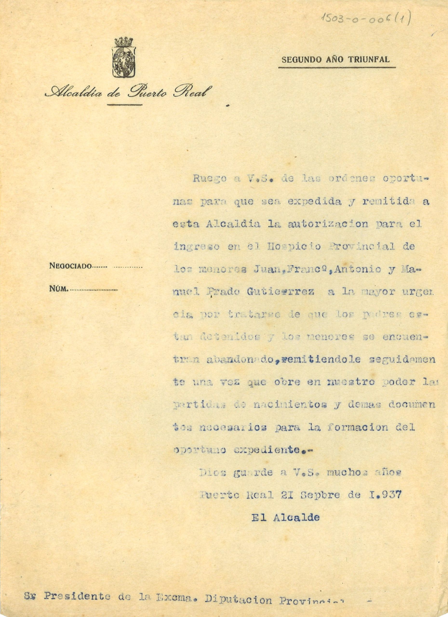 RELACIÓN DE DOCUMENTOS SIGNATURA: 01503000006, 21/09/1937, 01189000021, 24/09/1937
